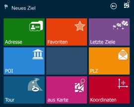 Die Zieleingabe kann klassisch über die Eingabe am Navigationsgerät oder als Auswahl aus den Favoriten erfolgen, es ist aber auch möglich über die Navmaxx API die Adressübergabe